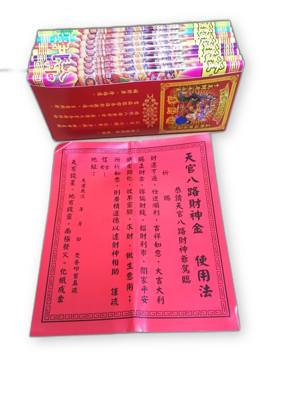 品名:八路財神財神金 尺寸: 東、西、南、北、中、天時、地利、人和 八路財神 補財庫金紙